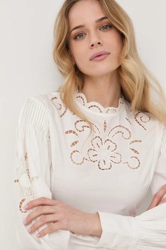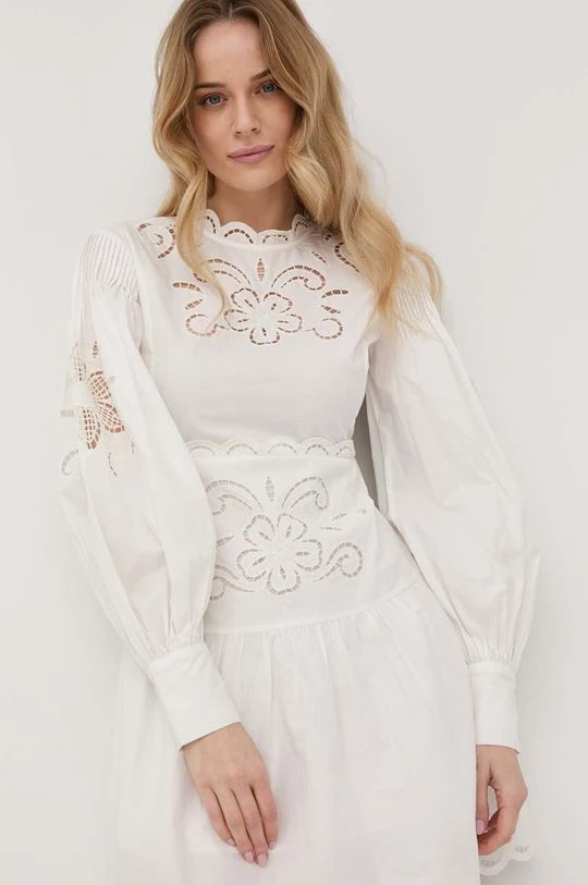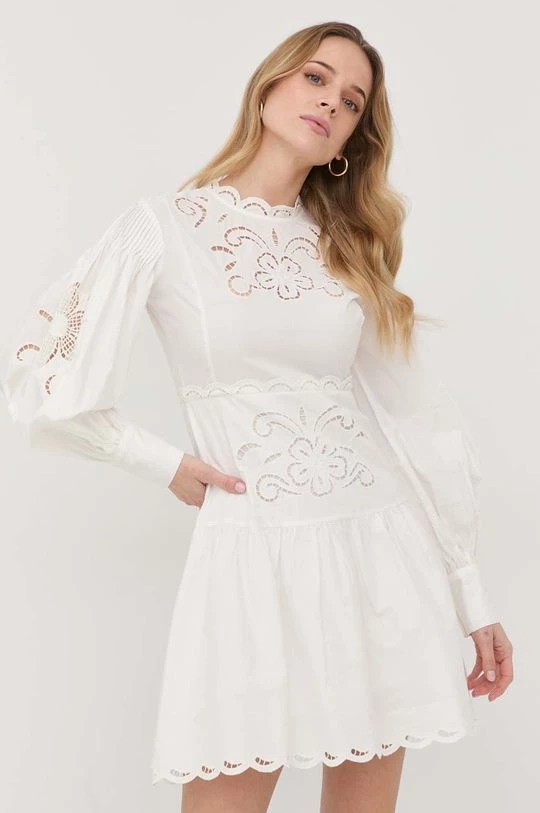 Ελαφρύ φόρεμα από τη συλλογή Twinset. Ανοιχτό μοντέλο από από πλεκτό με απλικέ. Ελαφρύ ύφασμα, σχεδιασμένο για πιο ζεστές εποχές.