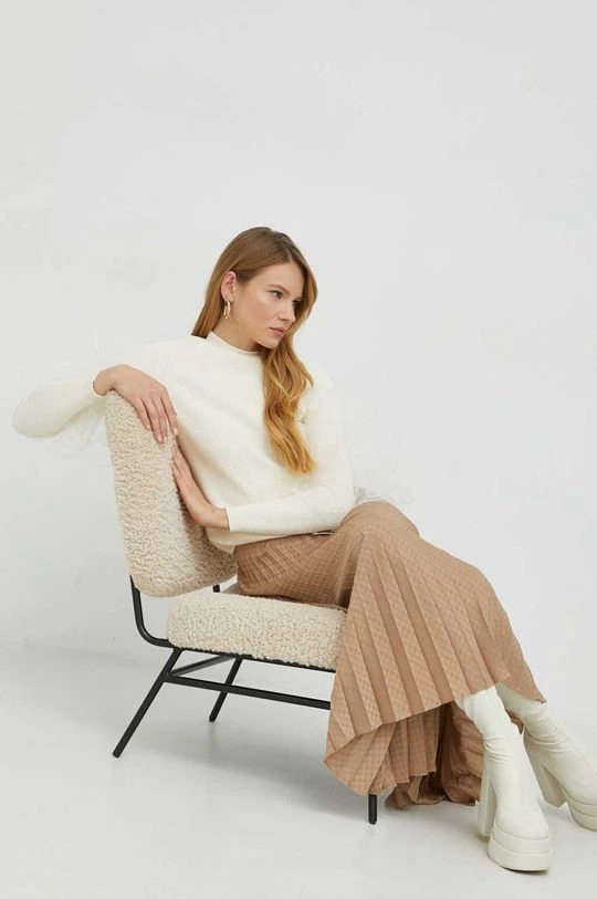 Φούστα από τη συλλογή Twinset. Μοντέλο με που απλώνεται προς τα έξω κόψιμο, από ύφασμα με σχέδια.