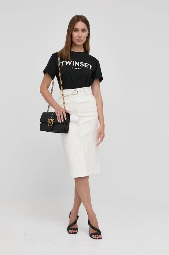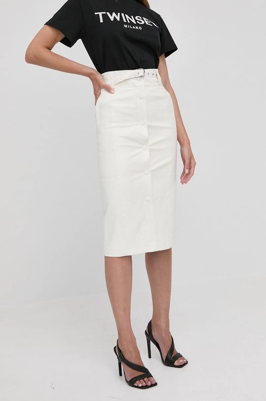 Φούστα από τη συλλογή Twinset. Model o ευθεία τμήμα, από οικολογικό δέρμα.