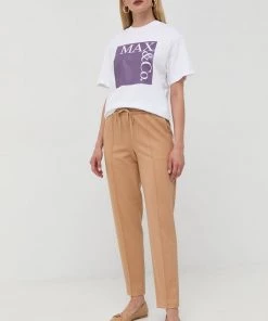 Γυναικεία Υφασμάτινα Παντελόνι με μείγμα κασμίρ Twinset μπεζ,